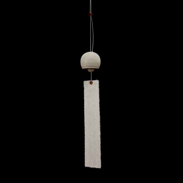 陶芸家 堅田貴治さんの白磁風鈴です。 白磁の白が一際美しい風鈴。舌には、急須の茶漉し部分を2つ合わせ球体に。短冊は土佐和紙を使用。こより紐を自身で作成し、ストッパーの革がアクセントになっています。長さの調節も可能です。 ※屋内での使用をおすすめします。 【サイズ】 径:約50mm 高さ:約45mm ※サイズはおおよそです。予めご了承下さい。 【うつわご購入に際しての注意点】 必ず以下の注意点をご一読ください ・在庫数がある作品は、画像掲載作品以外をお届けする可能性があります。多少のサイズの誤差、厚みなどが異なる場合がございますことをご了承ください。 ・撮影時の光の加減や、お客さまのモニターによって、色合いが実際の商品と異なる場合がございます。