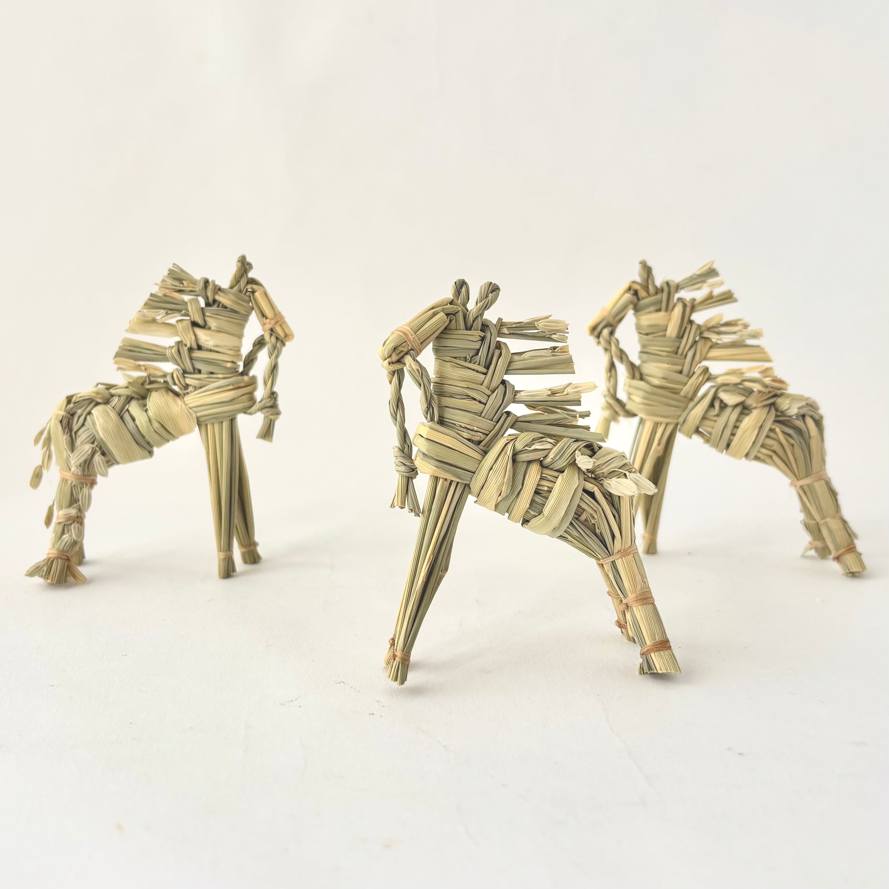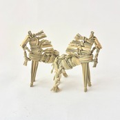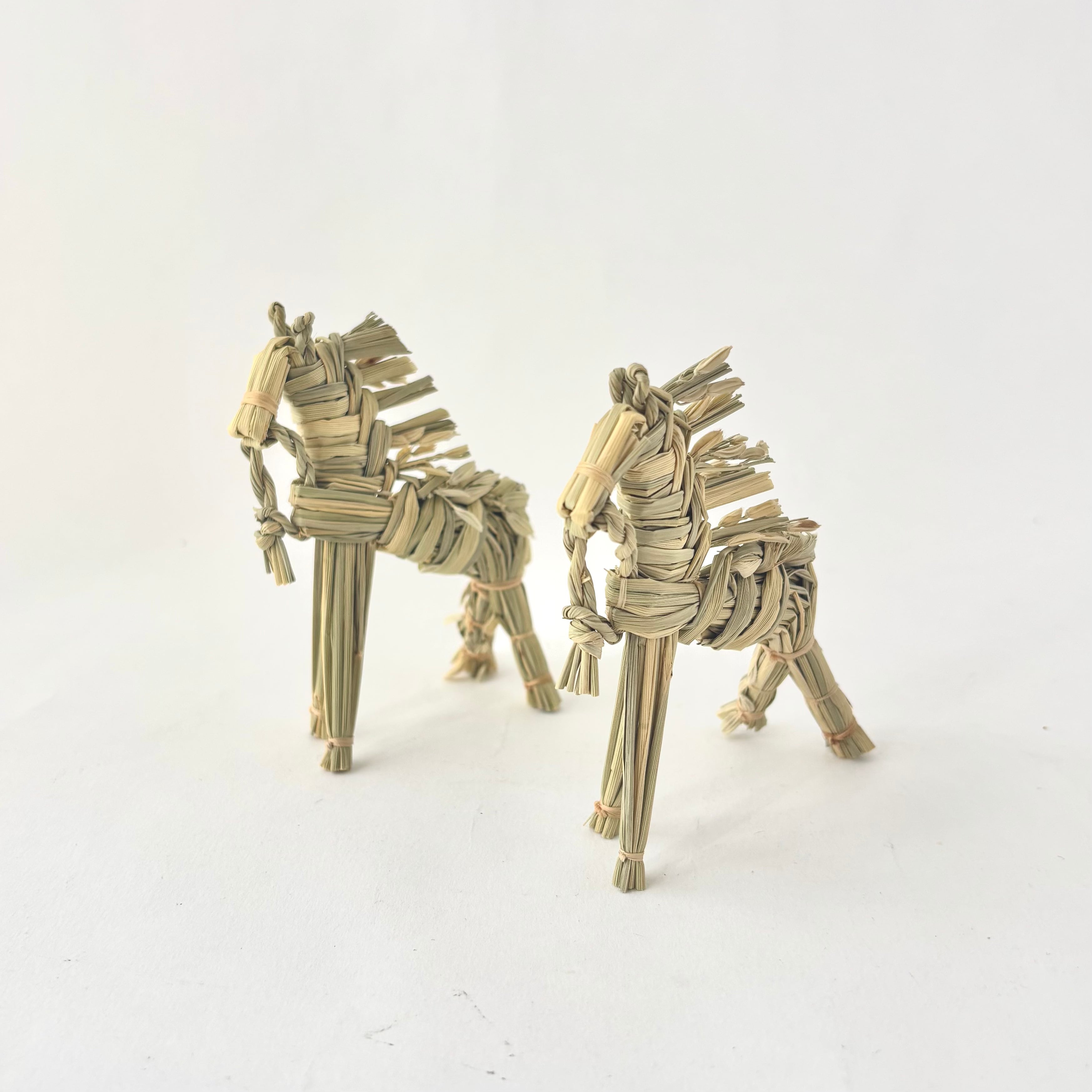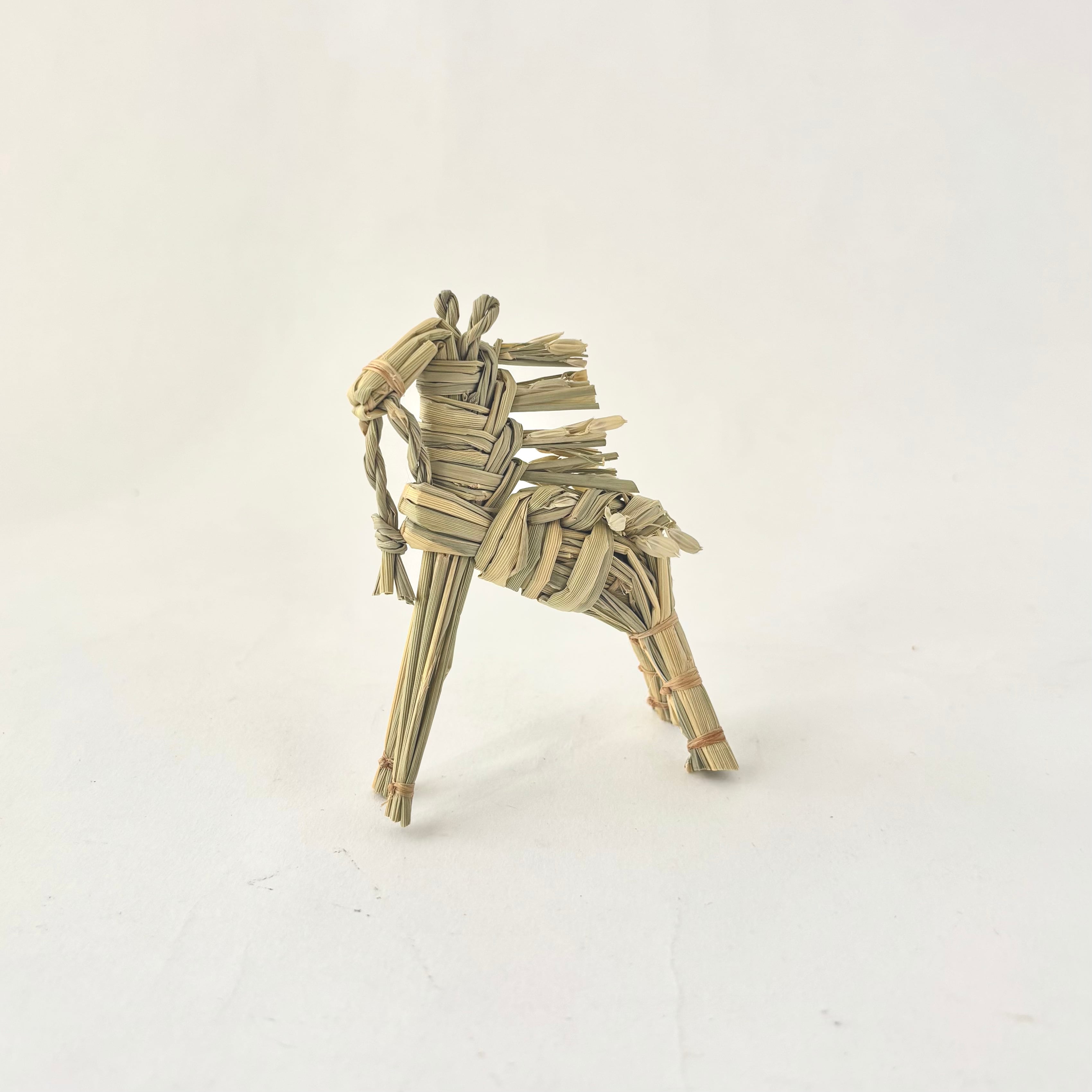 箒モロコシを種蒔きから収穫、脱穀から乾燥まで一人で行い、様々な用途の箒を作られています。干支藁の材料であるひこばえは稲を携え、農耕に欠かせなかった馬らしい逞しく凛とした姿です。
