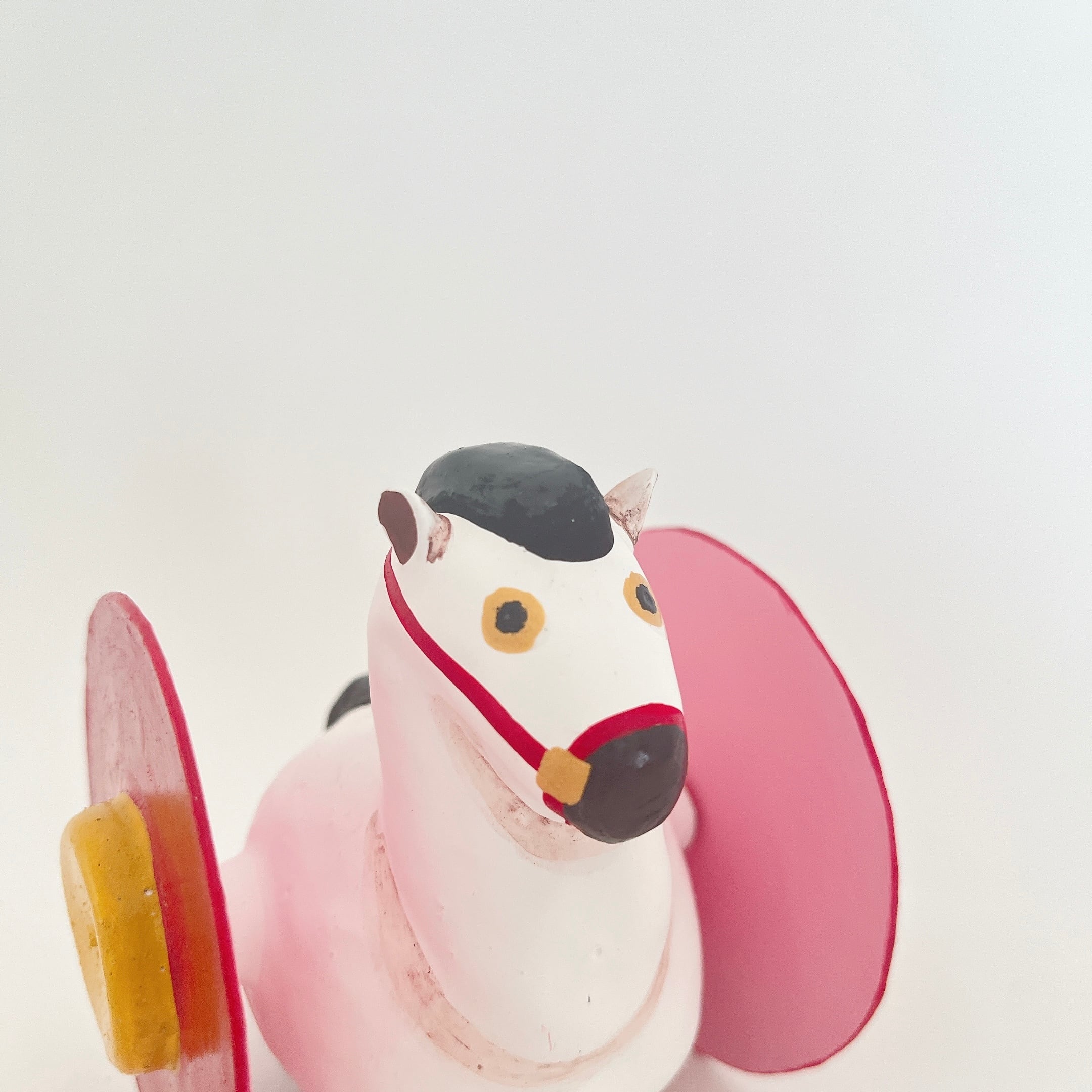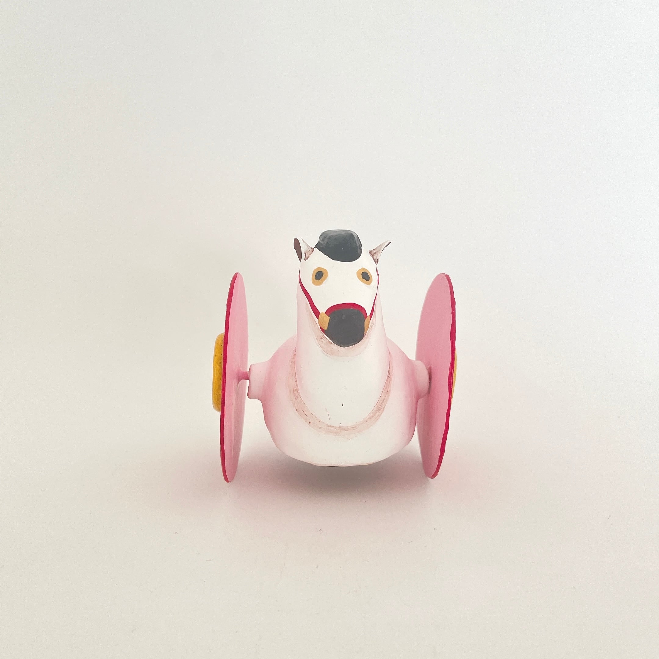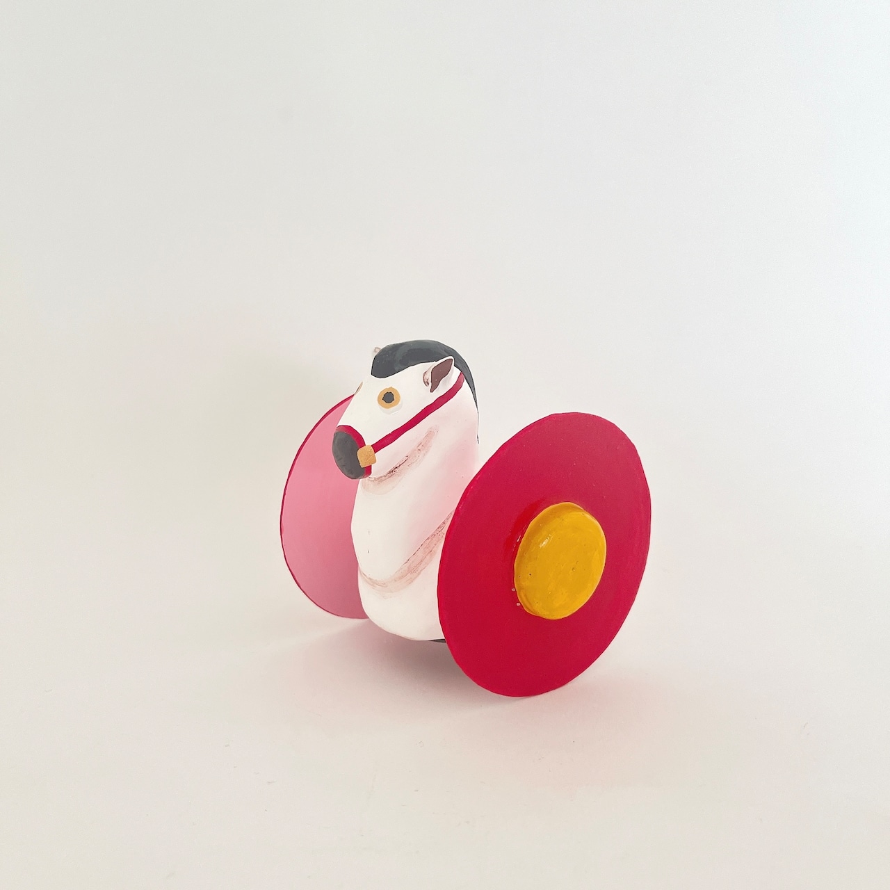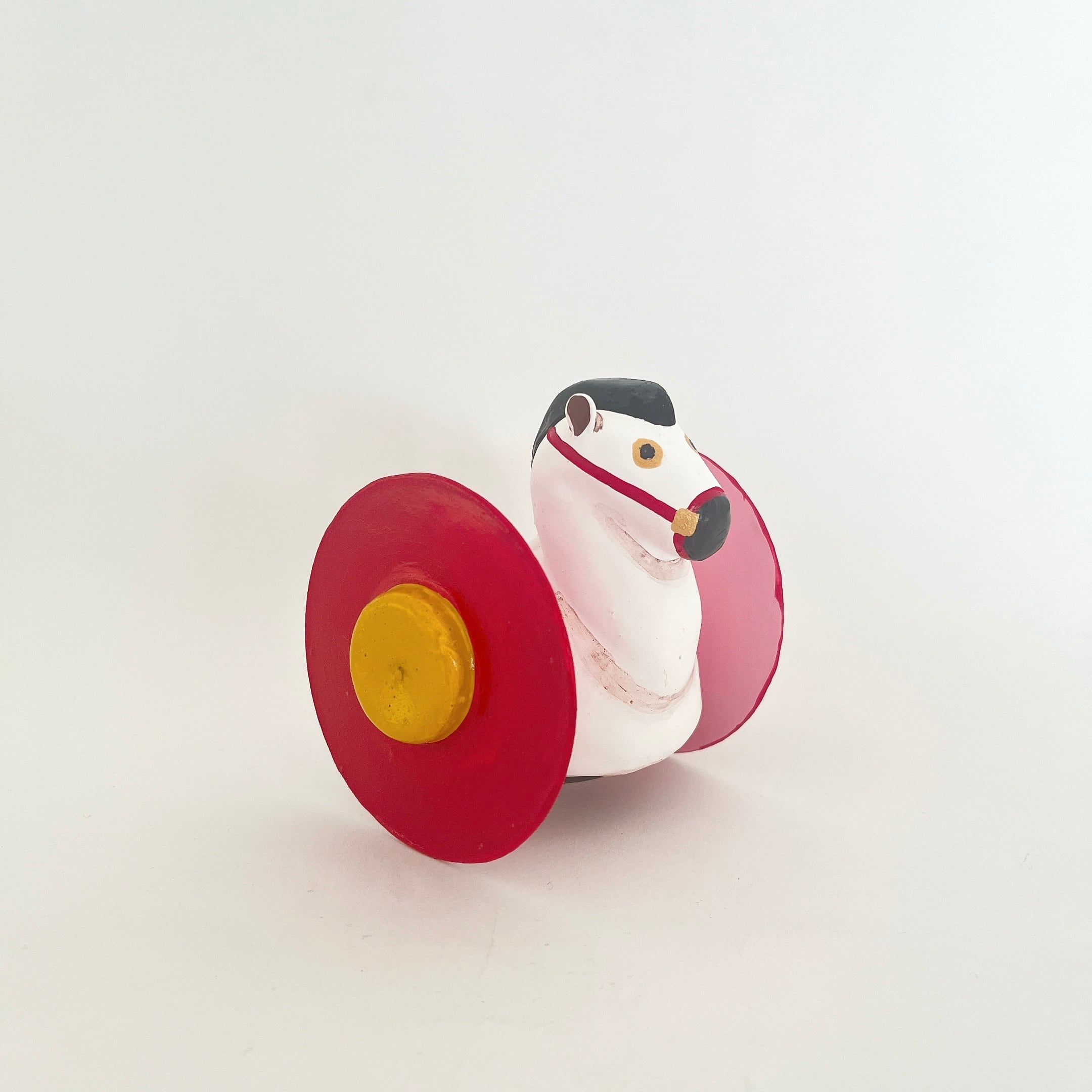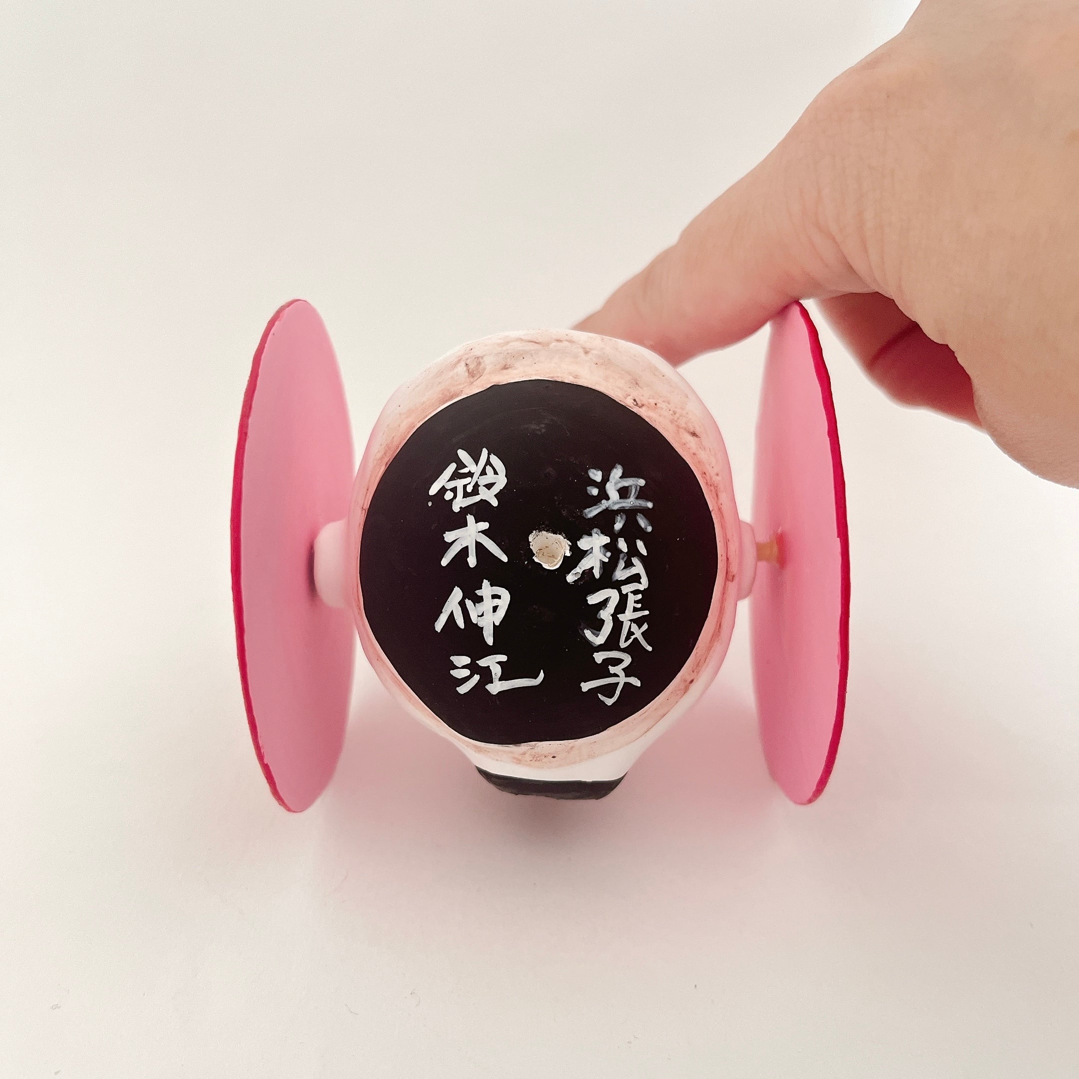 浜松張子の「ころがし」は、静岡県浜松市の郷土玩具の一つです。車輪が付いていますが、中におもりが入っているので、転がしても起き上がるように進む特徴を持った縁起物です。