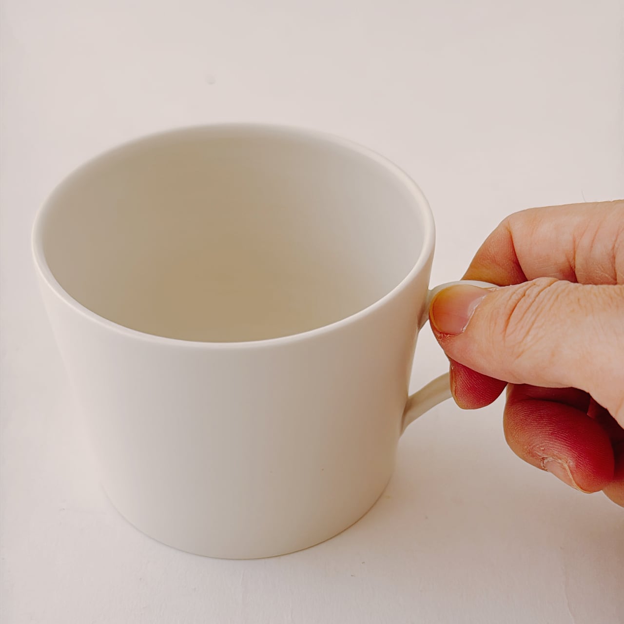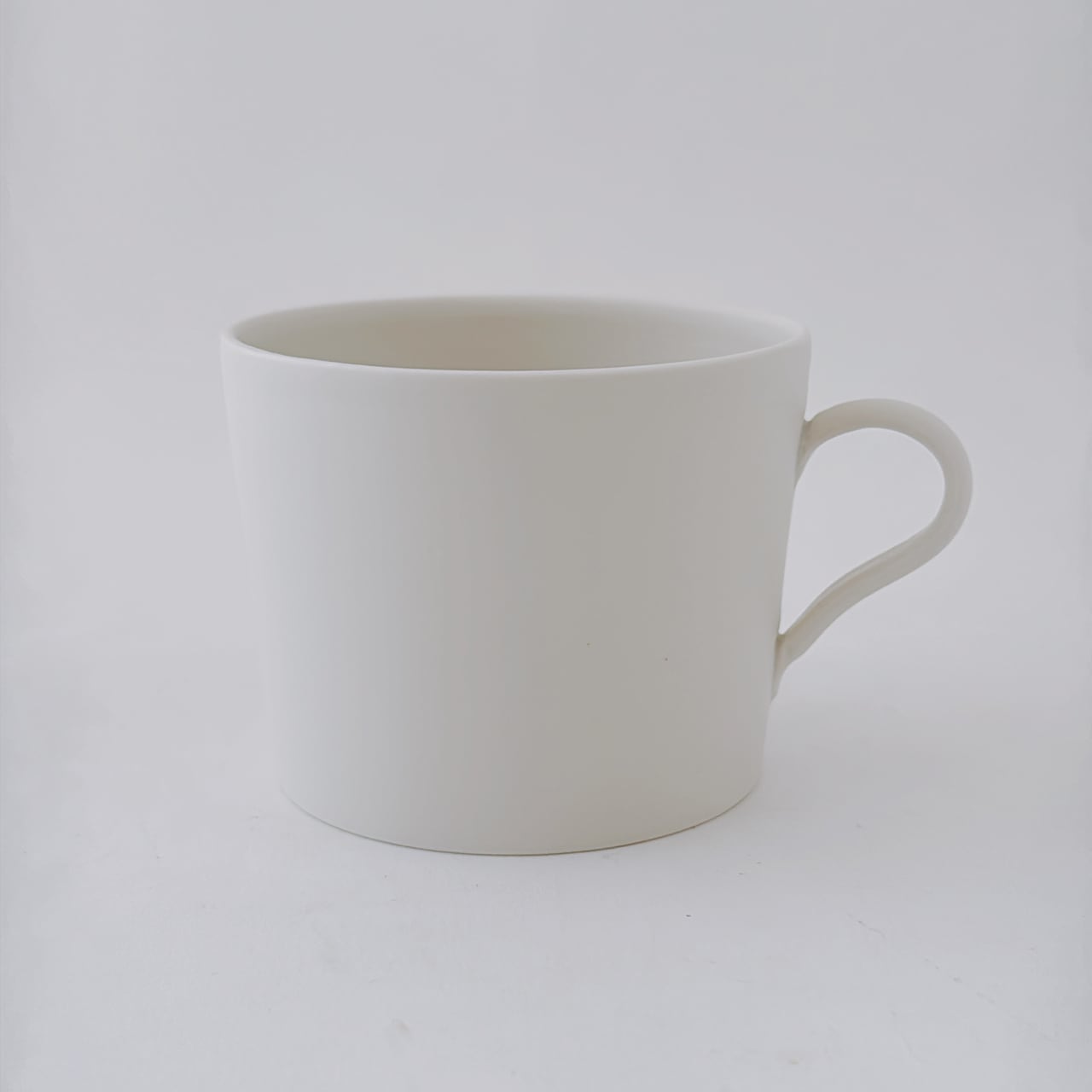 シンプルでシャープな印象のマグカップ。立ち上がりがスラっとしていて、どんな飲み物でも映えます。持ち手部分は、3本の指でしっかりと支えられ、安定感があります。