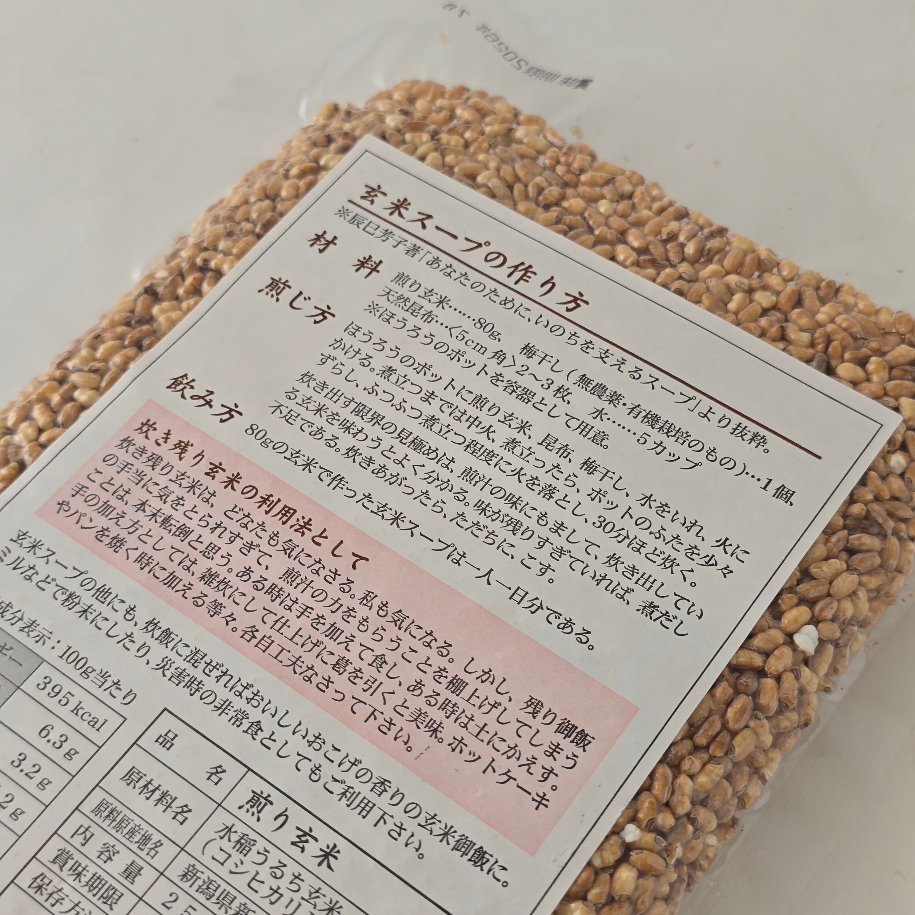 新潟県認証特別栽培米のコシヒカリを100%使った煎り玄米です。