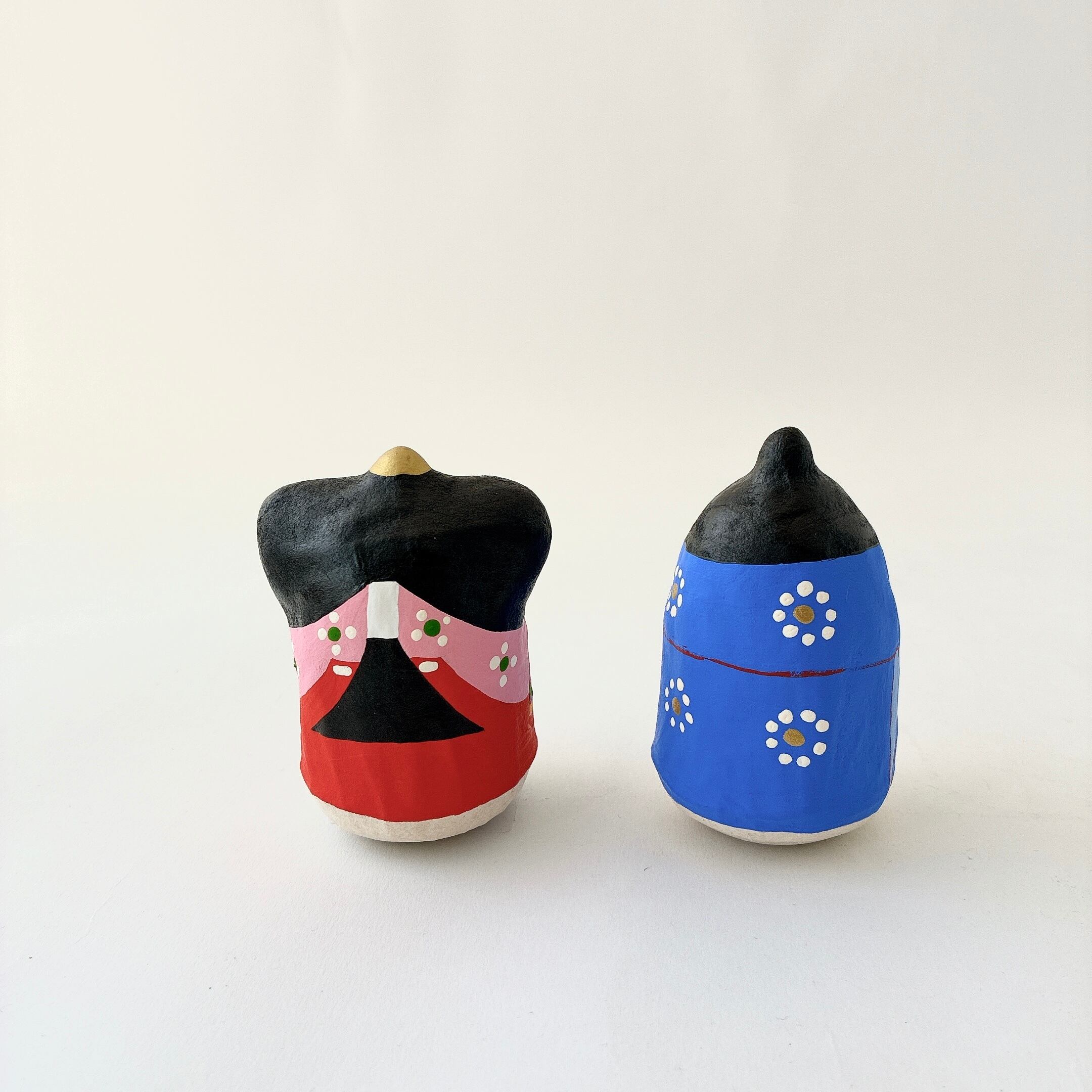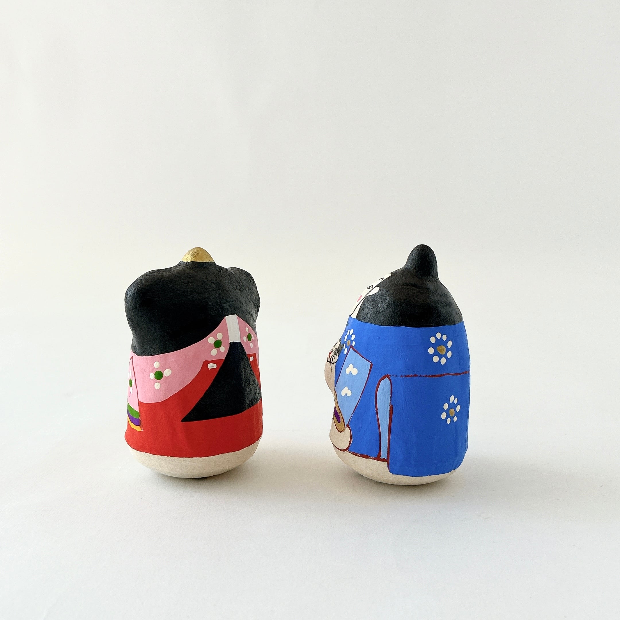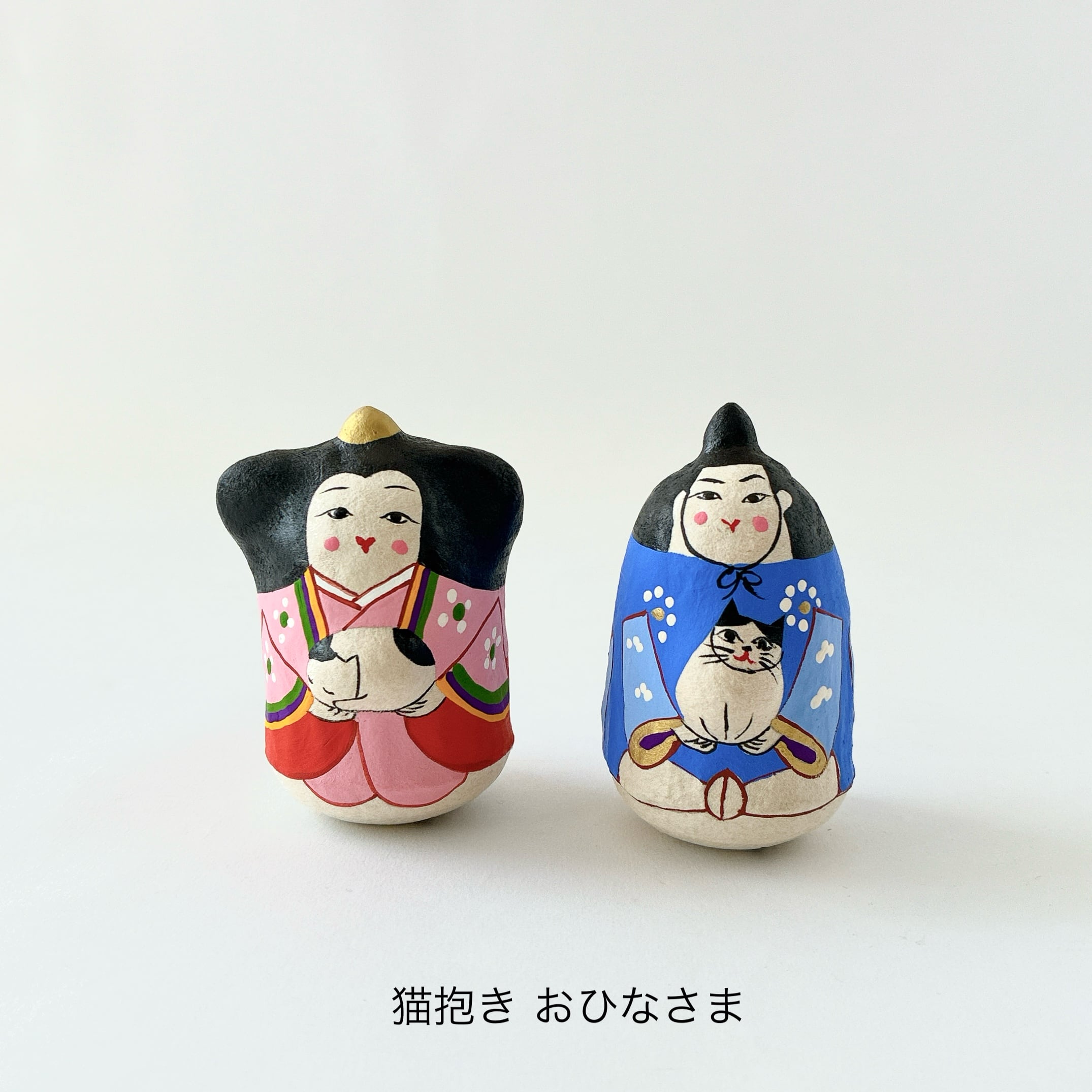 一つひとつ手書きされた、ユーモアのある表情のおひなさま。それぞれ猫とパンダを抱きしめていて、ゆらゆらと揺れる姿は愛らしく、コンパクトなサイズ感でどんな場所にも飾りやすいです。
