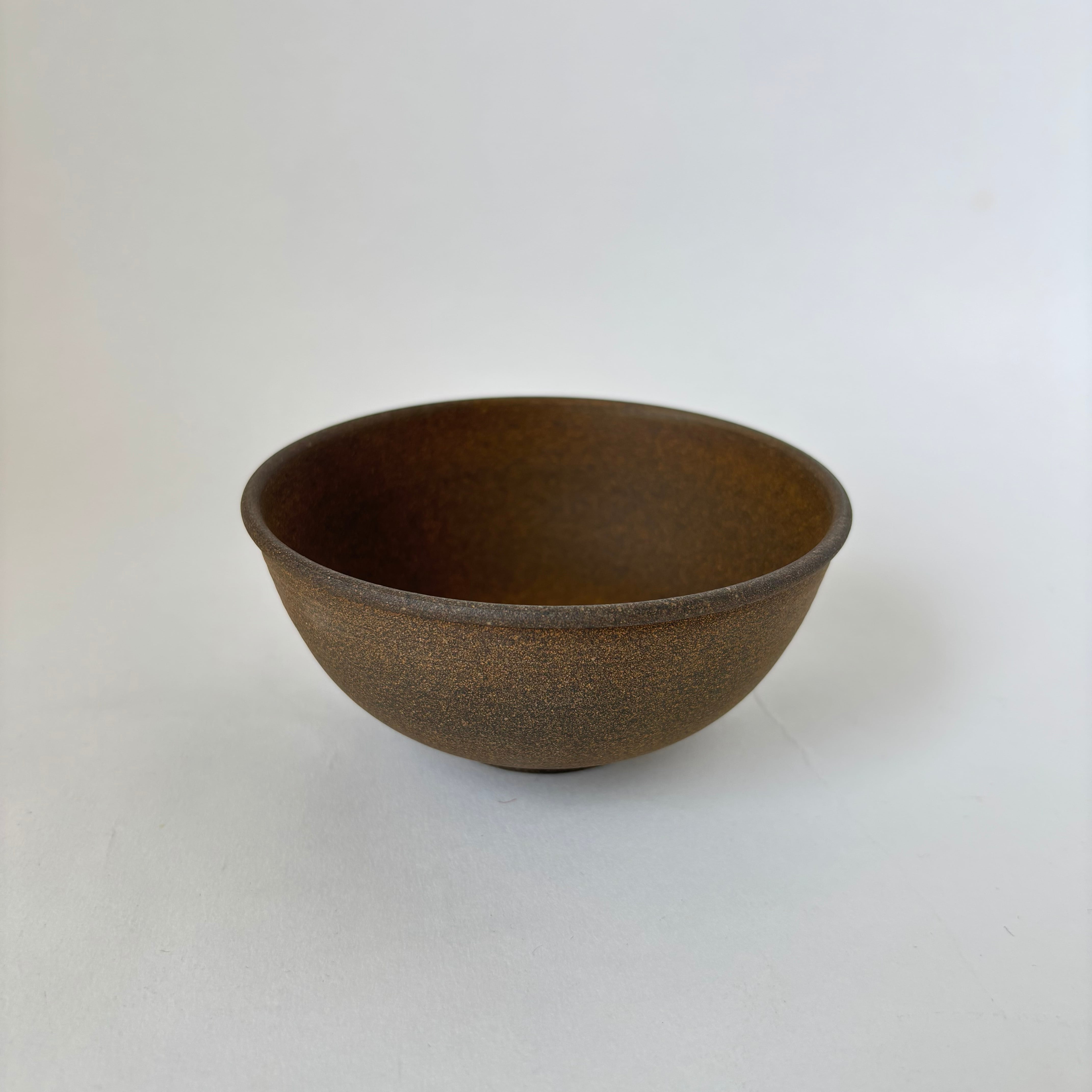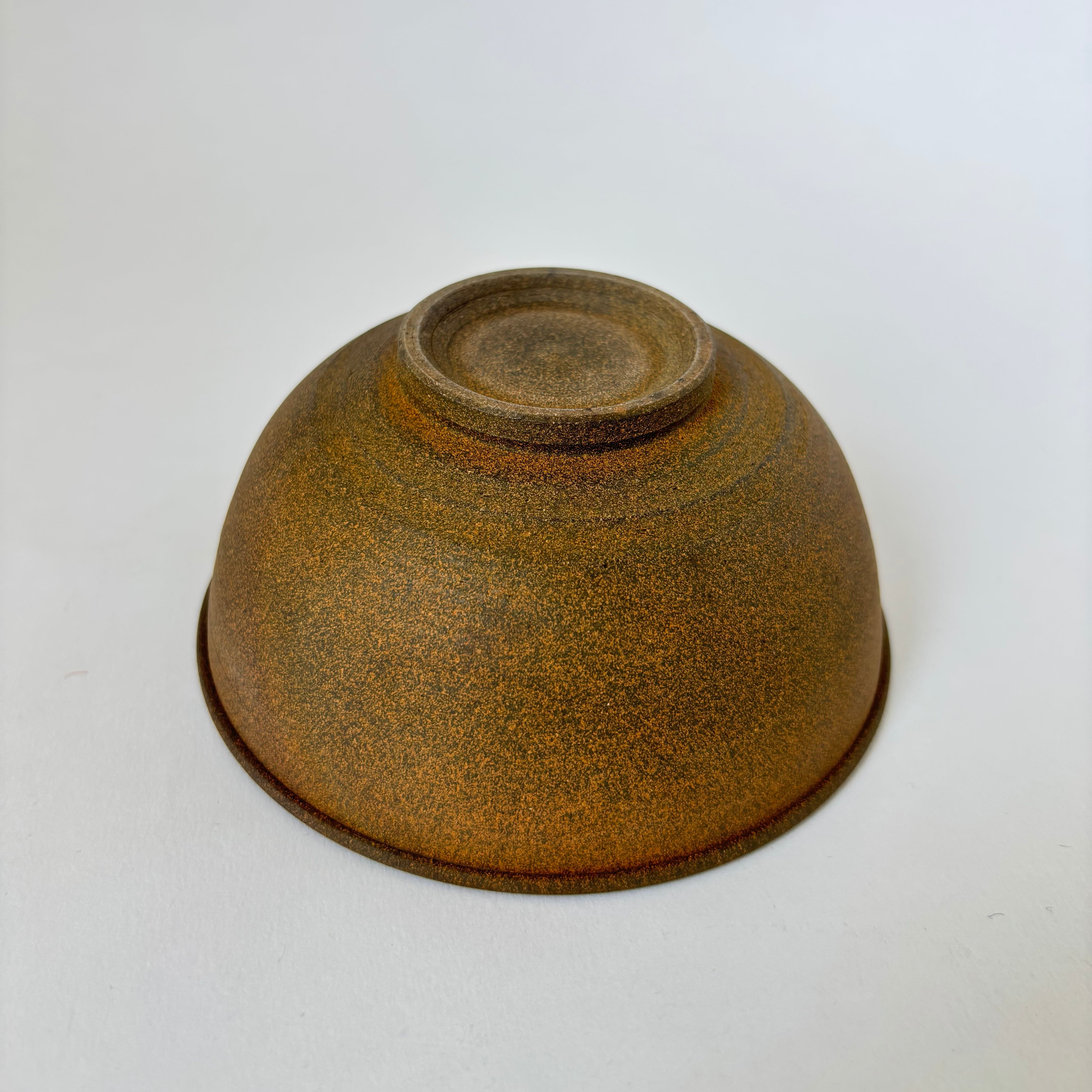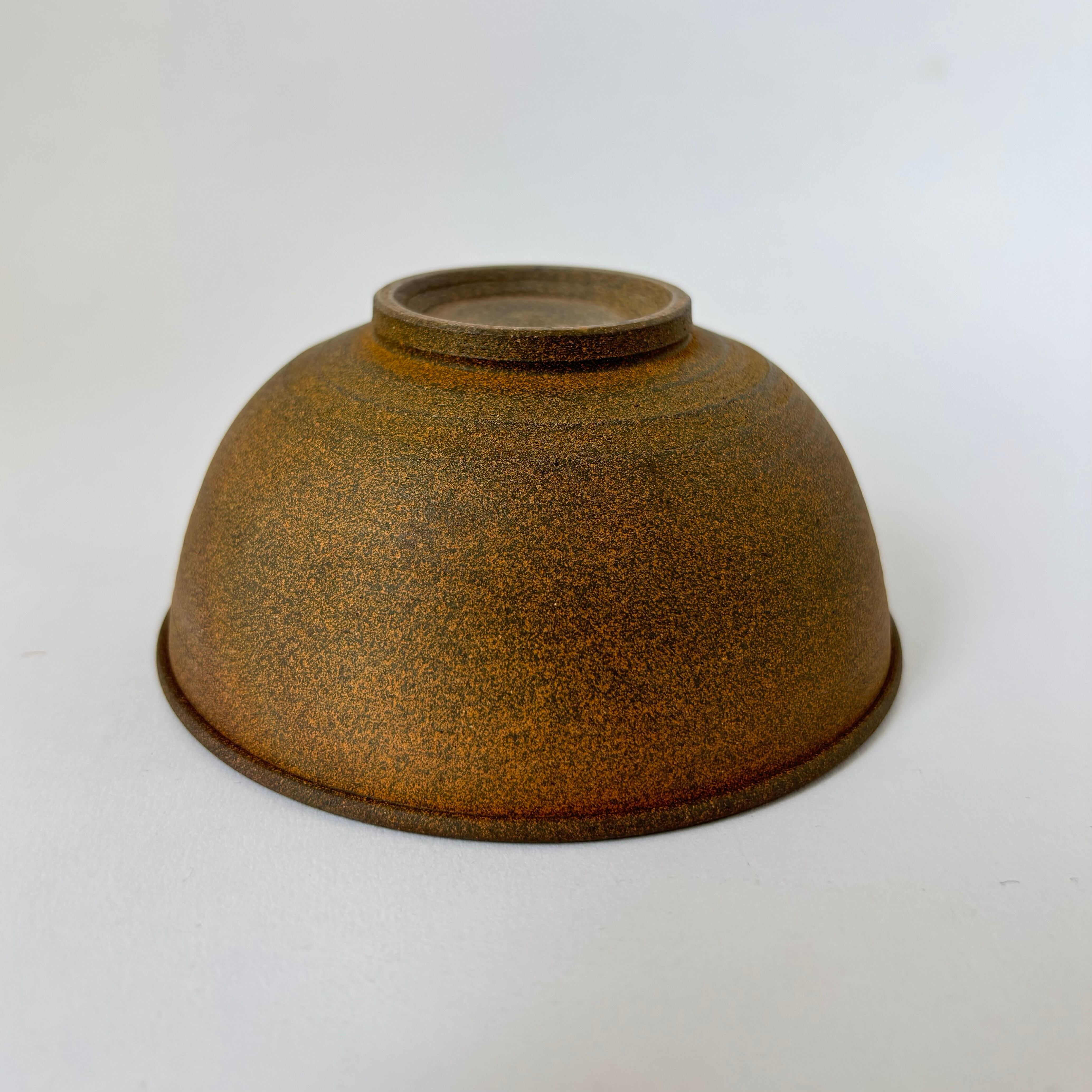 小ぶりな焼締めの飯碗。轆轤で極限まで薄く仕上げている為軽く、縁の折り返しや高台など、随所にこだわりが見て取れます。