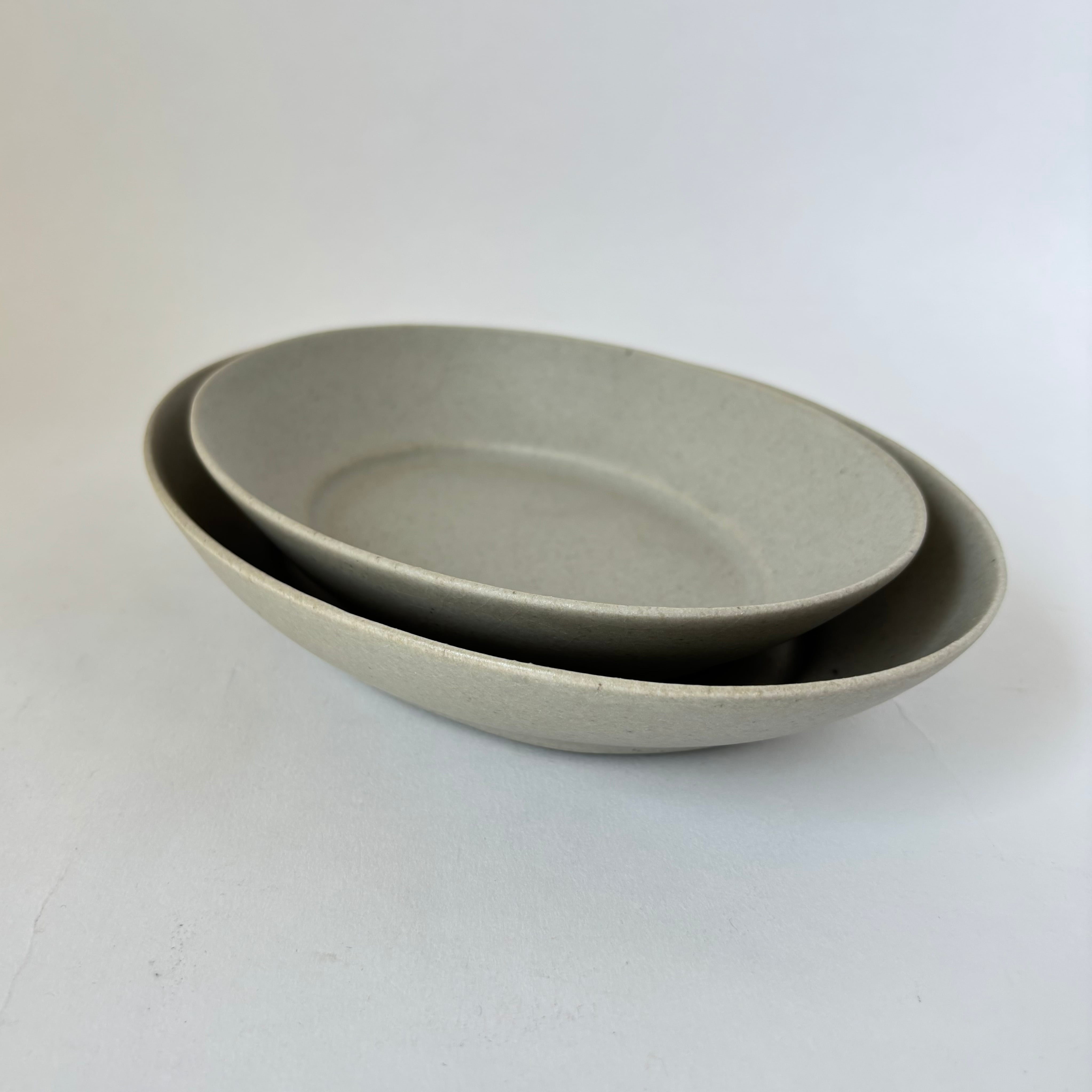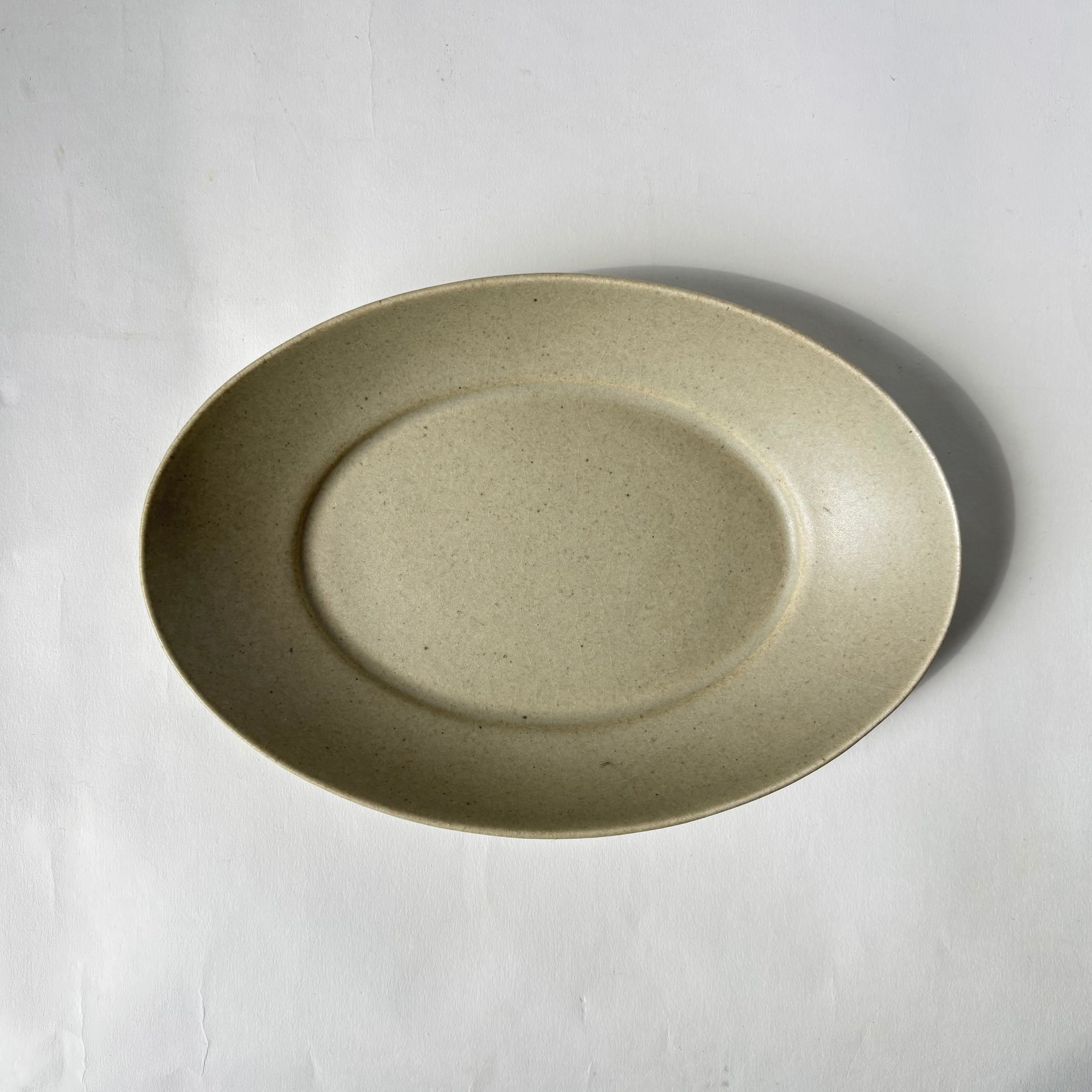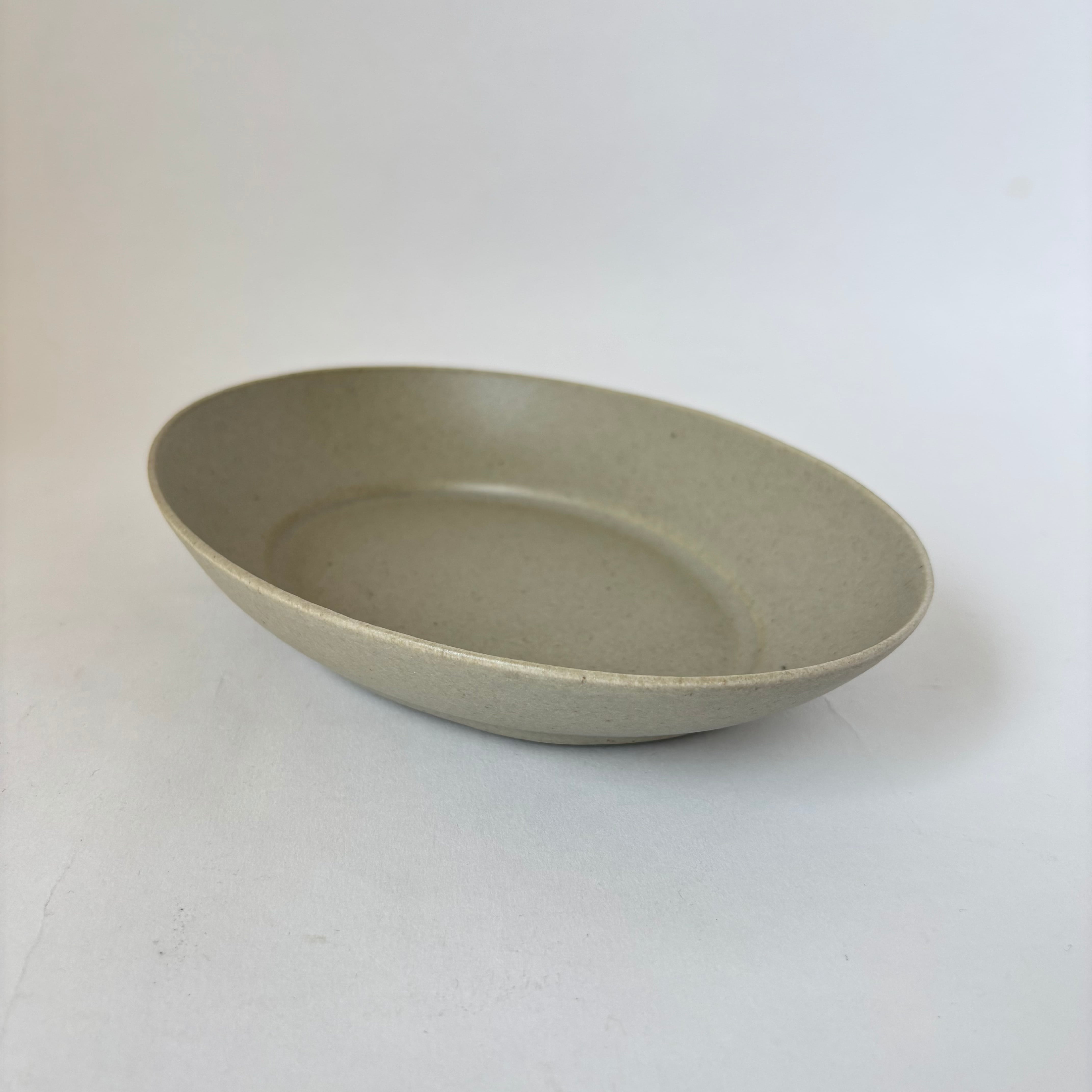 マットな質感とユニセックスな雰囲気を持つ楕円深皿。目跡も美しく、デザインの一部になっています。パンやお惣菜、スナック菓子やパスタ等、幅広くお使いください。
